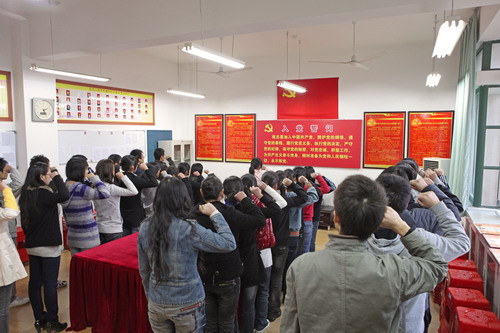 6月10日,bwin必赢党委在党员活动室隆重举行2010年新党员入党宣誓仪式暨2010届毕业生党员大会。bwin必赢党委书记阎成瑜、学生各支部书记、学生工作专职辅导员、2010年新入党的党员和2010届全体毕业生党员出席了大会。会议由bwin必赢分团委书记杜海赣主持。