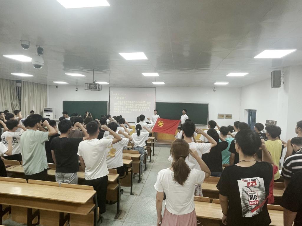 随后,团员代表纷纷发表感言,表示作为新时代的大学生,我们要汲取榜样力量,不忘初心跟党走,积极投身社会主义现代化国家的建设。会上,院团委副书记张荣老师为新团员佩戴共青团团徽,并举行了新团员们宣读入团誓词暨老团员们重温入团誓词。
