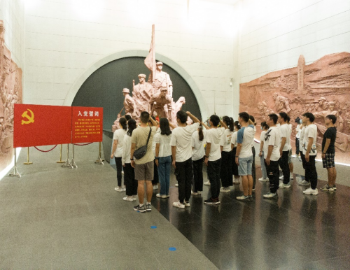 支部党员19计算机科学与技术卓越计划班辛江莹:“我们近距离接触党和革命时期的历史,重温入党誓词,让我时刻铭记党员身份!纪念堂中塑有革命烈士的雕像,文字诉说着他们的伟大事迹,参观完深感我们今天的幸福生活来之不易,都是他们的血肉筑起我们的新中国!我们要赓续红色血脉,跟着党继续前行。”(文/张荣 图/刘美鹏)
