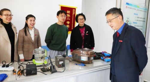 金志农实地查看了工作室运行情况,与工作室辅导员老师和在现场开展义务维修的学生党员志愿者亲切交谈,并提出三点要求:一是要加强工作室氛围营造,打造成师生党员学党史、做实事服务群众的窗口;二是要加强工作室内涵建设,将志愿服务活动做深做实,充分展示辅导员工作水平和信息学科专业水平;三是要做好活动数据统计分析,为不断提升工作水平提供支持。(文/张荣 图/潘旭)