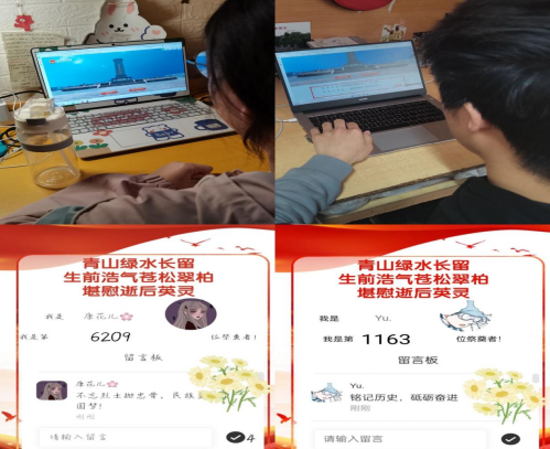 网络云祭扫活动。学院团委通过微信公众号积极营造缅怀英烈、弘扬英烈精神的浓厚氛围,并号召全体青年学生积极参与清明祭英烈网上祭扫活动,抒写感言寄语,云游“红色地标”,深切缅怀革命先烈。同时,各班级团支部通过班级主题团日活动、班会等形式,重温先烈事迹,致敬不朽先烈,继承革命精神。