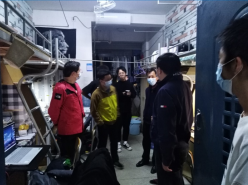 18日上午,陆伟锋和校基建处负责人罗来瑜深入学7栋查看自习室、宿舍走访慰问,与同学们亲切交谈,仔细了解近期同学们的学习、生活情况、思想动态、毕业生工作落实、毕业设计进展等情况;检查上网课学习情况和学习效果给与指导;提醒同学们积极配合学校疫情防控工作,提高个人防护意识,做好个人防护,共同维护校园安全稳定。对疫情防控体温测量、楼栋台账、楼顶积水漏水等进行现场查看和指导。晚上,bwin必赢主要负责人、相关班级班主任老师前往走访看望学生们近期的情况。