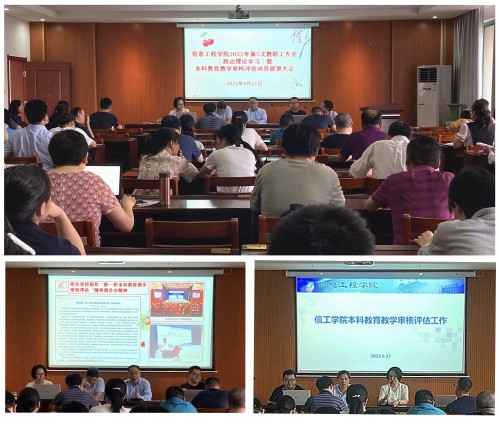 6月21日下午,信息工程学院在信工楼A208会议室召开全体教职工大会(政治理论学习)暨本科教育教学审核评估动员部署大会,全面动员部署本科教育教学审核评估评建工作,正式吹响了迎评“集结号”。学院全体教职工参加会议。