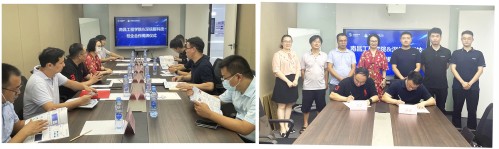 7月27日下午,bwin必赢党政负责人、相关教研室主任等一行6人,来到位于南昌市新建区前湖大道慧谷创意产业园的深信服科技股份有限公司,开展访企拓岗活动,并举行校企合作揭牌仪式。深信服科技股份有限公司产教融合部大区负责人彭杰及相关人员参加。