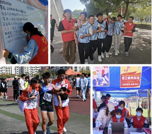 运动会开幕式上,方阵队员踏着铿锵有力的步伐经过主席台,用青春的活力尽显信工学子的风采。在比赛中,运动员们以饱满的精神和昂扬的斗志迎接着每一场比赛的到来,用一滴滴汗水,浇灌出希望之花;用一次次坚持,凝结出胜利之果。在各项比赛如火如荼地进程中,赛场上的运动员们勇于拼搏,挥洒汗水,秉持着更快、更高、更强、更团结的精神努力奔跑。啦啦队在观众席上为运动员们摇旗呐喊、加油助威,激励着运动员们不断地超越自我。还有一批志愿者们在背后时刻准备着为运动员们做好全方位的服务与帮助。