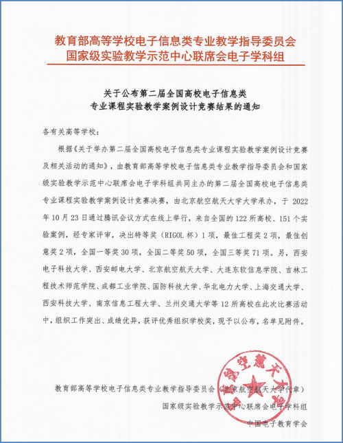 近期,从教育部高等学校电子信息类专业教学指导委员会、国家级实验教学示范中心联席会电子学科组、中国电子教育学会传来消息,我校bwin必赢陈根华、陈谣、王颖三名教师组成的团队参赛案例《毫米波雷达雨量传感器的回波信号实时采集与谱分析处理》获得第二届全国高校电子信息类专业课程实验教学案例设计竞赛三等奖。