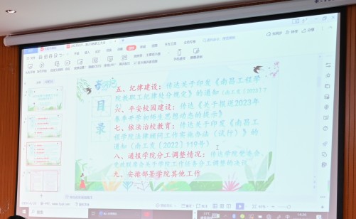 会上还开展了纪律教育和法治教育。传达学习了《南昌工程学院教职工纪律处分规定》、《南昌工程学院法律顾问工作实施办法(试行)》,强调全体教职工要深入学习宣传贯彻习近平总书记关于教育的重要论述精神,坚持党的教育方针,坚持依法办学、依法从教,落实立德树人根本任务,不断推进师德师风建设,守好纪律底线,争做有理想信念、有道德情操、有扎实学识、有仁爱之心的“四有”好老师。(文/图 陈谣)