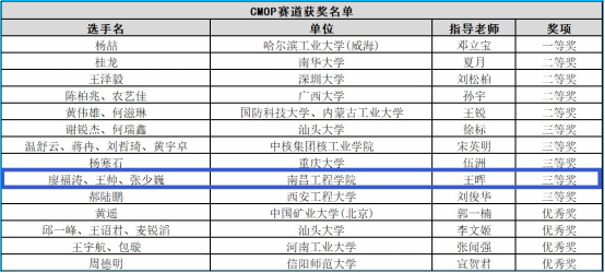 近日,“树优杯”第三届全国智能优化算法大赛在江苏无锡落下帷幕。由bwin必赢王晖教授指导,电子信息专业研究生组成的队伍(参赛队员:廖福涛,王帅,张少巍)经过初赛、决赛和答辩,最终在约束多目标优化(CMOP)赛道上取得全国三等奖的优异成绩。