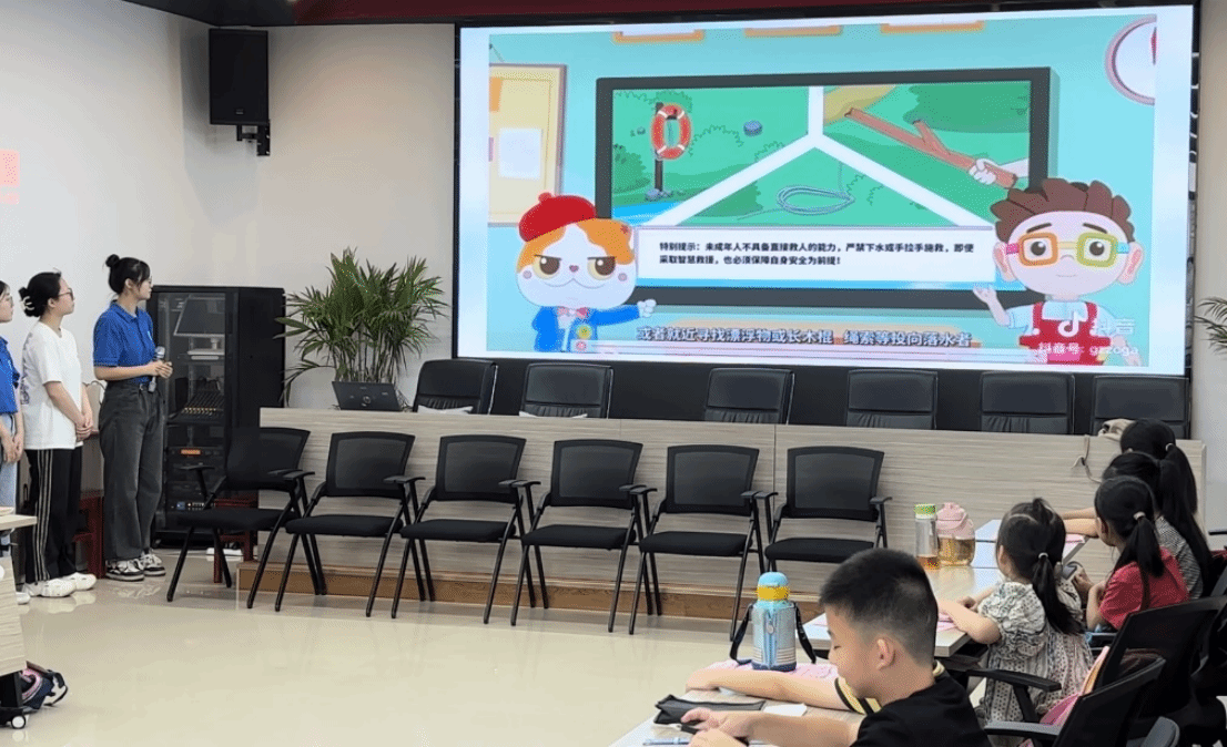 为扎实有效的开展防溺水安全教育,帮助中小学生增强防溺水安全意识,掌握防溺水知识技能,提高自救互救能力,7月9日,bwin必赢“信息融通,数智创新”暑期“三下乡”文明实践团前往赣州市章贡区水东镇七里村新时代文明实践站,开展“溺水警钟时长鸣,安全教育记心中”防溺水主题安全教育。