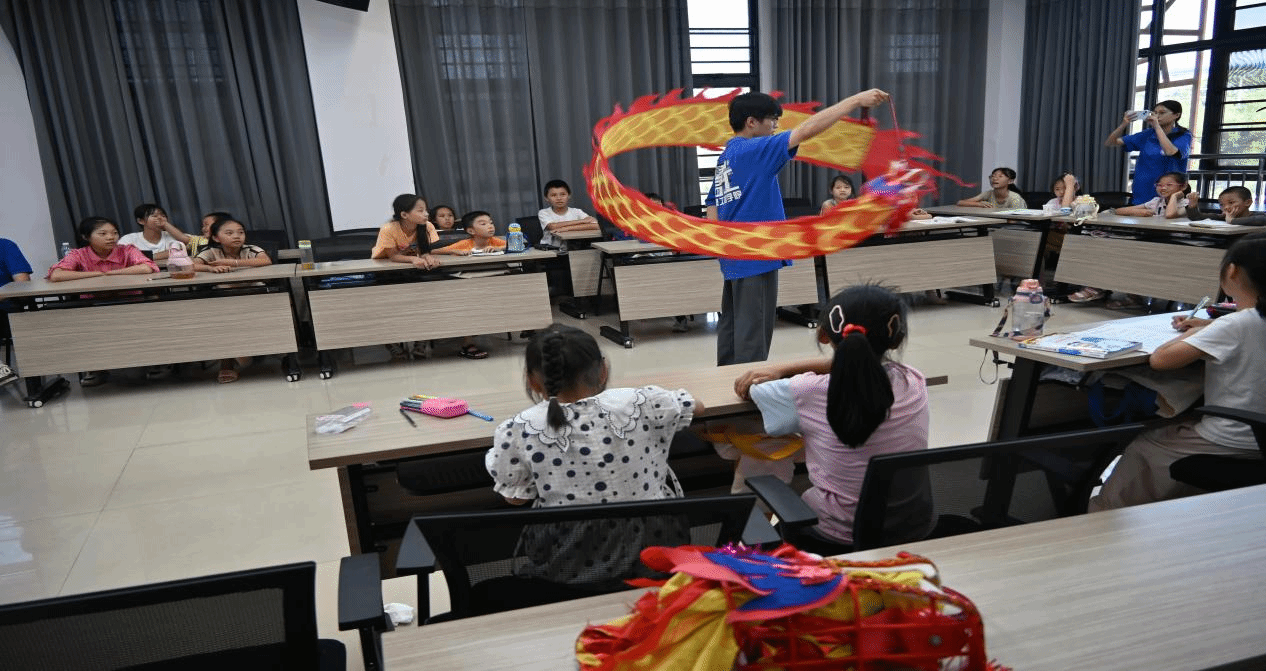 为深入弘扬中华传统文化,推动非遗文化运动发展,丰富中小学生精神文化生活,培养当代大学生的社会实践能力,7月11日,bwin必赢“信息融通,数智创新”大学生暑期“三下乡”文明实践团前往赣州市章贡区水东镇新时代文明实践站开展了“小小彩带龙,传承正当时”主题活动。