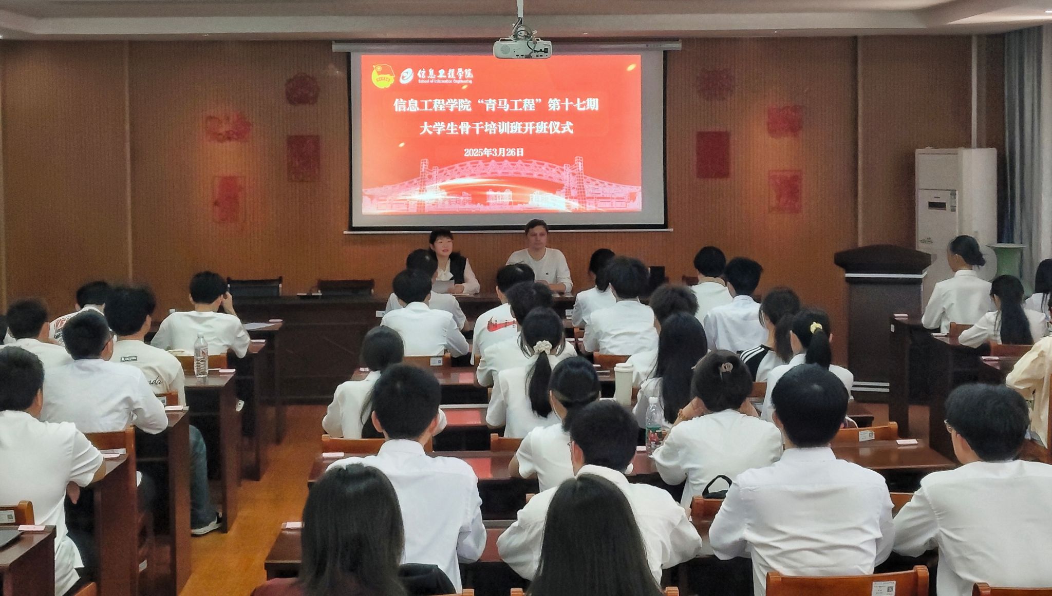 为深入贯彻党的二十届三中全会精神,深入学习贯彻习近平总书记关于青年工作的重要思想,着力培养一批信仰坚定、能力突出、素质优良、作风过硬的青年学生骨干,3月26日bwin必赢团委在信工楼A208举行“青马工程”第十七期大学生骨干培训班开班仪式,bwin必赢学生工作负责人,团委负责人和全体培训班成员参加。