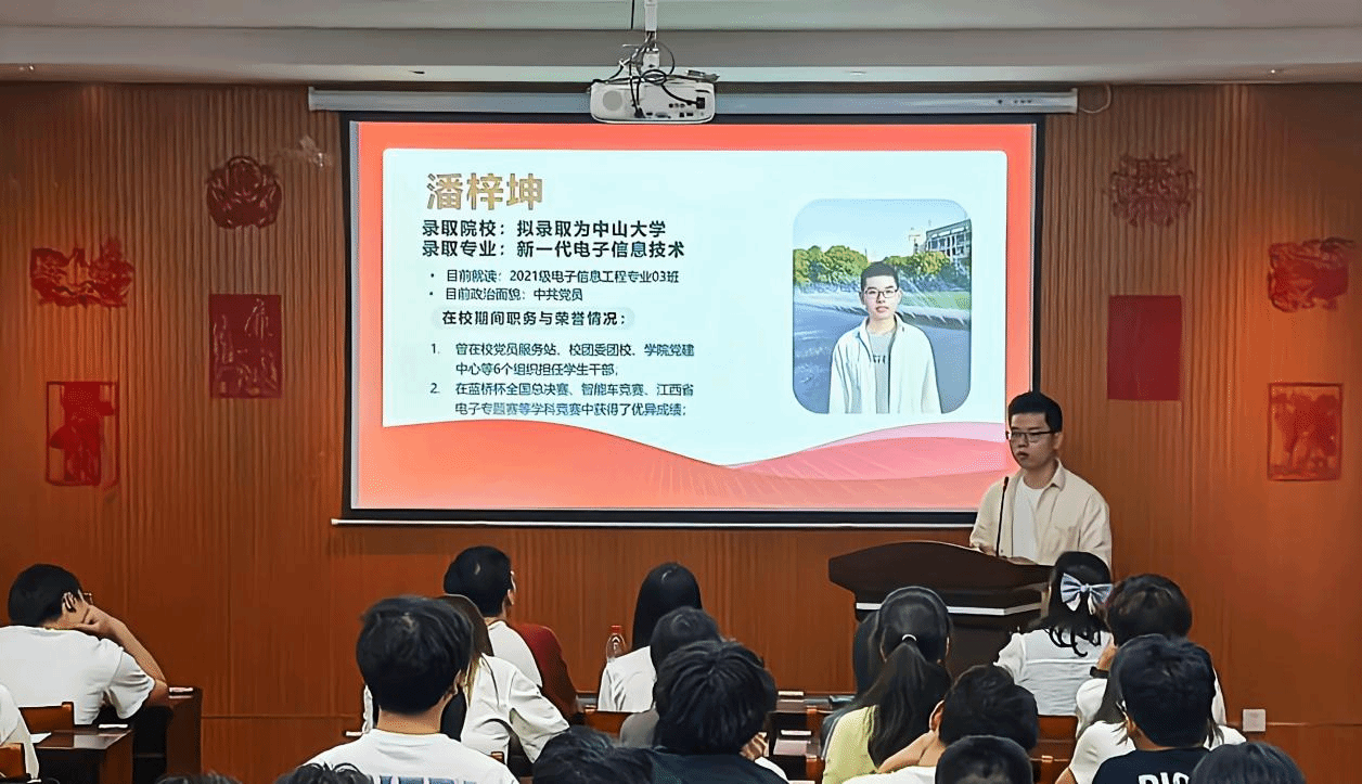 潘梓坤以“多维历练成就综合素养”为主线,分享了担任学生干部的成长经验、学科竞赛的实战心得以及研究生备考的心路历程。已被中山大学拟录取的他说:“学生工作与学科竞赛的融合,让我学会在团队协作中实现自我突破。”
